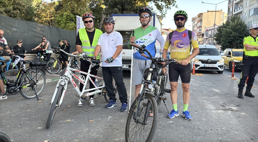 Görme engelli Berkay Gürpınar ile Necati Geniş de etkinlikte kılavuz sürücü eşliğinde pedal çevirdi.