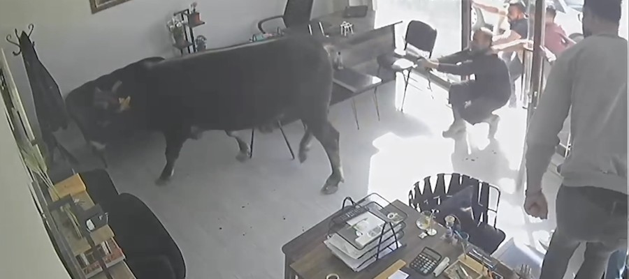 Kırklareli'nde mezbahadan kaçan ve bir anda emlakçıya giren dana, vatandaşları şaşkına çevirdi.