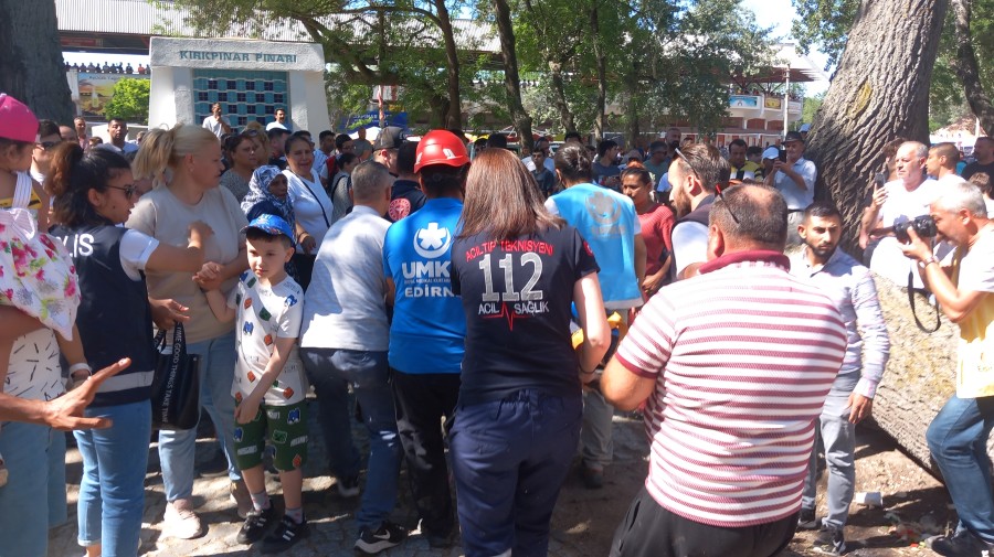 Kırkpınar Yağlı Güreşleri'ni izlemek için Sarayiçi'ne gelen vatandaşların altında oturduğu asırlık ağaç aniden devrildi. Ağacın altında kalanları kurtarmak için olay yerindeki vatandaşlar seferber oldu.