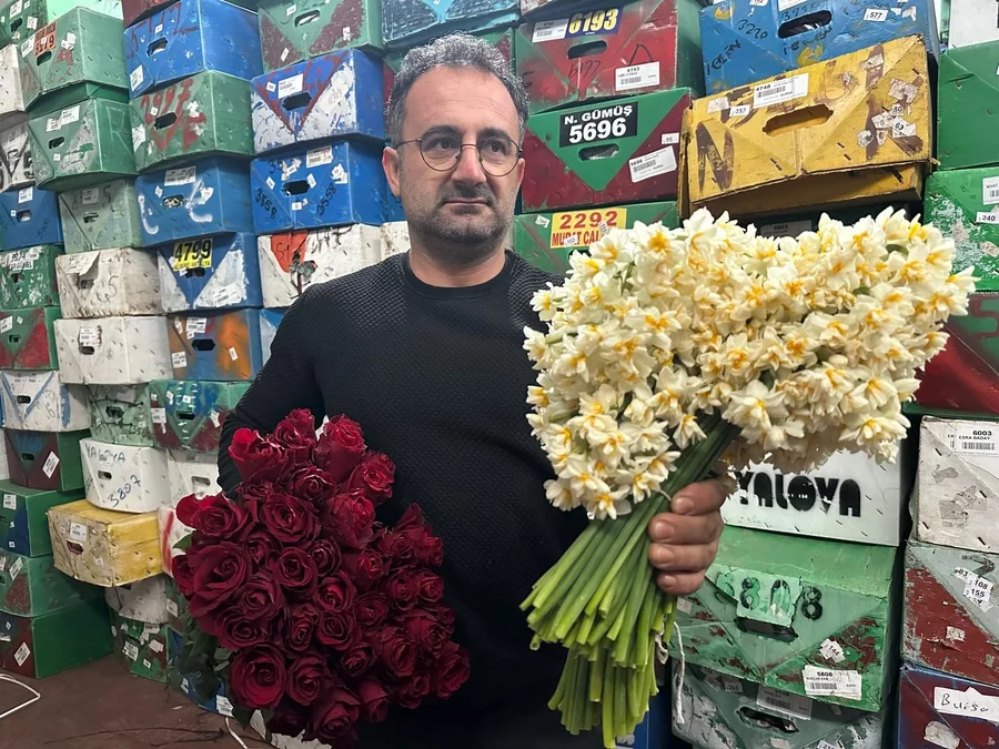 "Sevgililer Günü'nde en çok kırmızı gül ve kokusu dolayısıyla nergis tercih ediliyor. Bunların yanı sıra papatya, orkide ve kazablankalar da satılıyor. Üretim bölgelerimiz var. Antalya, İzmir, Yalova, Adana-Mersin bölgesinden geliyor çiçekler. Güller genellikle Adana-Mersin bölgesinden geliyor. İzmir'den buketlik papatya, kasımpatı; Yalova'dan kazablanka, şebboy gibi bitkiler geliyor."
