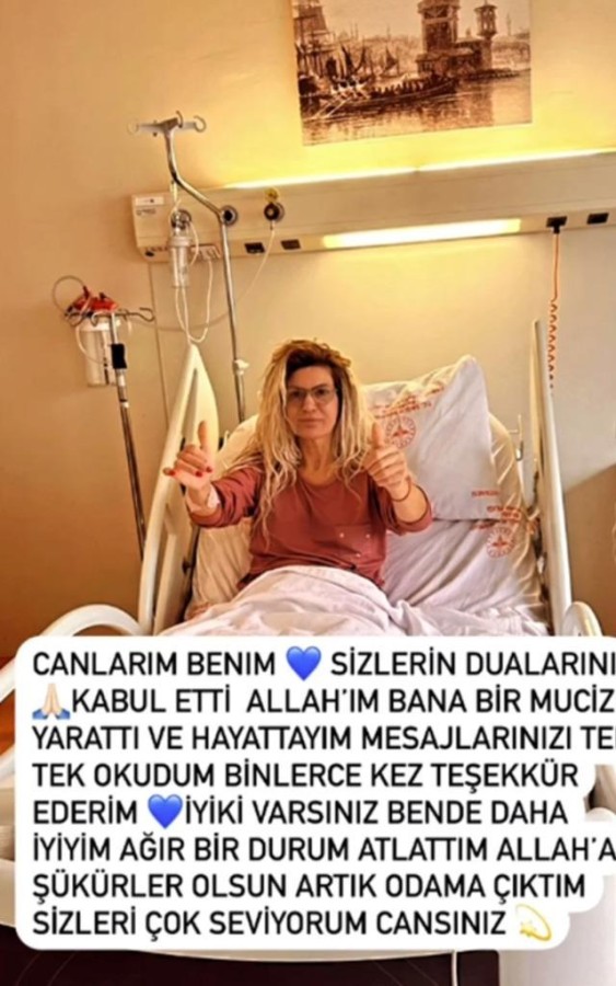Yılmaz, geçtiğimiz günlerde sosyal medya hesabından sağlık durumuyla ilgili paylaşım yapmıştı. Ünlü isim; "Canlarım benim, sizlerin dualarını kabul etti Allah'ım bana bir mucize yarattı ve hayattayım. Mesajlarınızı tek tek okudum binlerce kez teşekkür ederim. İyi ki varsınız ben de daha iyiyim, ağır bir durum atlattım. Allah'a şükürler olsun artık odama çıktım. Sizleri çok seviyorum cansınız" ifadelerini kullanmıştı.