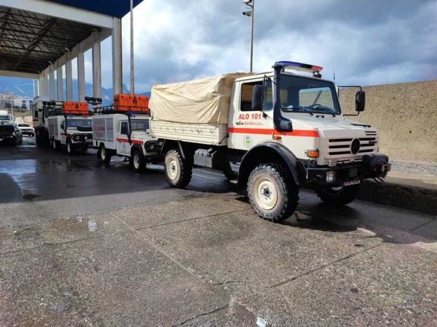 KKTC Sivil Savunma Teşkilatı Başkanlığı'na bağlı 20 kişilik arama kurtarma ekibi ile 8 özel donanımlı araç Girne Limanı'ndan Mersin'in Taşucu Limanı'na doğru hareket etti.
