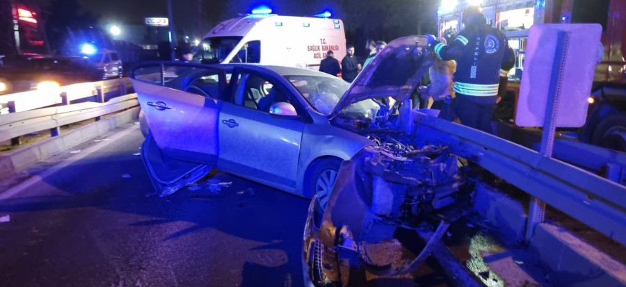 Kocaeli D-100 karayolunda sürücünün direksiyon hakimiyetini kaybettiği otomobil bariyerlere saplandı, kazada 4 kişi yaralandı.