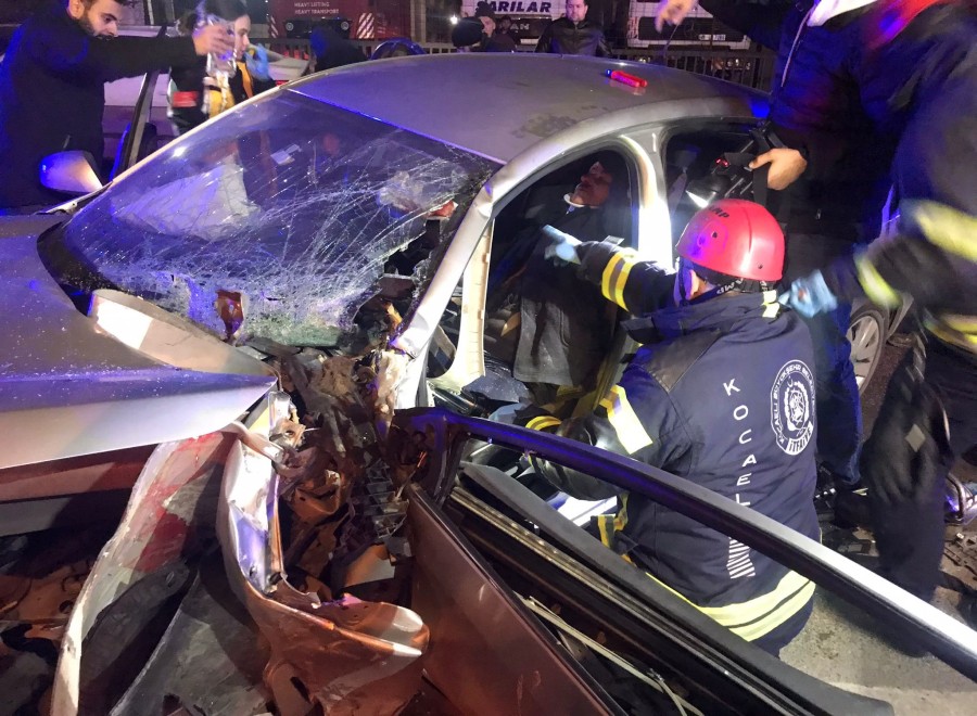 Kazanın şiddetiyle aracın parçalandığı ve ezildiği görüldü. Polis kazayla ilgili inceleme başlattı.