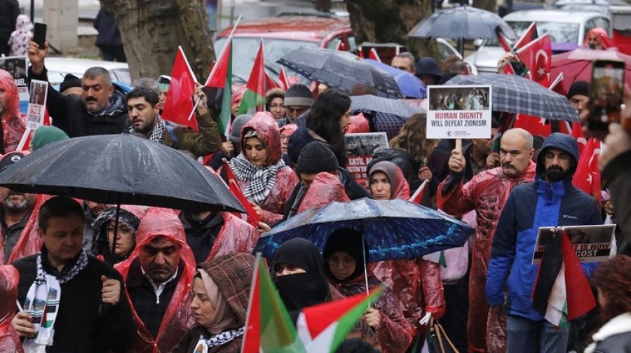 İzmit'teki Fevziye Camisi önünde, ellerinde Türk ve Filistin bayraklarıyla toplanan kalabalık, "Sıra Sende Kocaeli Özgür Filistin İçin Ayağa Kalk" yazılı pankartın arkasında yürüyüşe geçti. Yağmura rağmen yürüyüşe yoğun katılım gösterenler, İsrail aleyhine sloganlar atarak Anıtpark'a ulaştı.