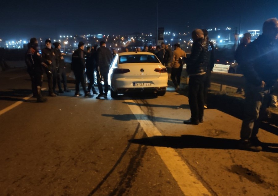 Devrilen motosiklet sürüklenerek seyir halindeki 35 CLT 653 plakalı otomobile çarptı.