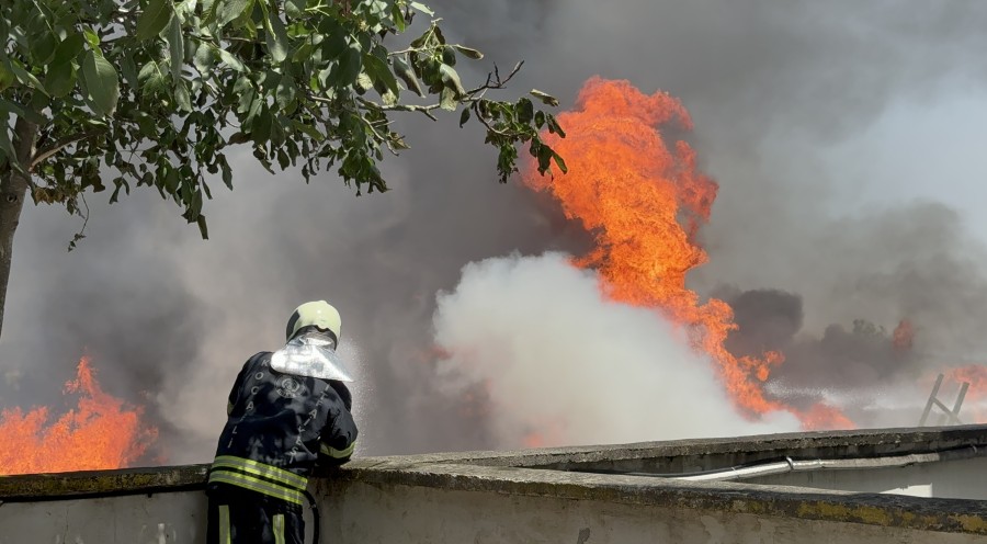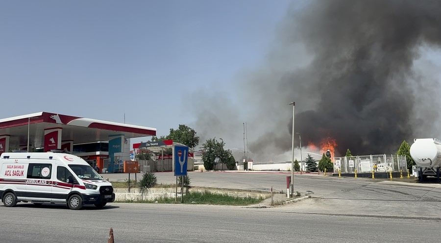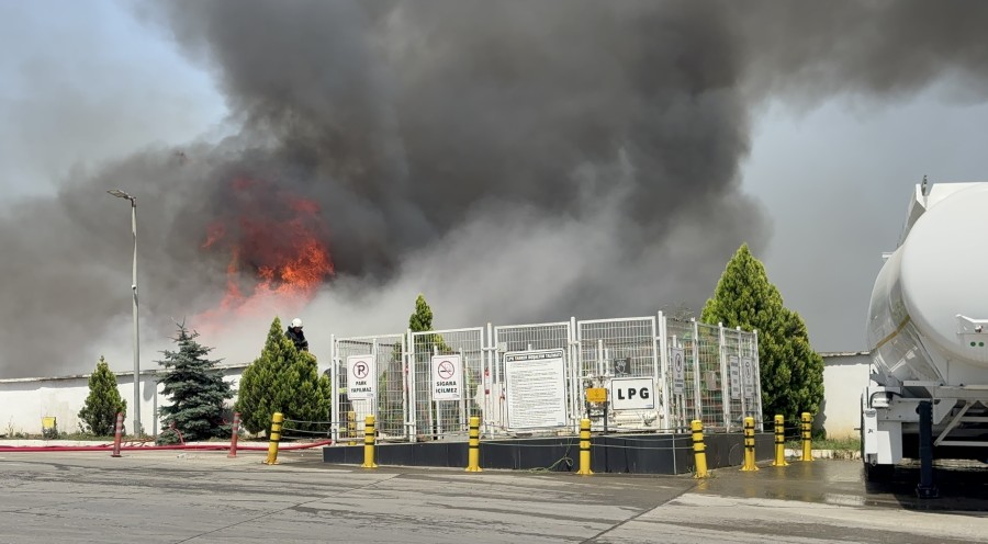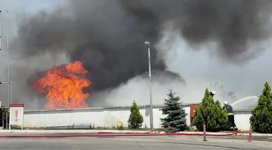 Fabrikanın hemen yanında bulunan benzin istasyonuna alevlerin ulaşmaması için ekipler yoğun çaba harcıyor.