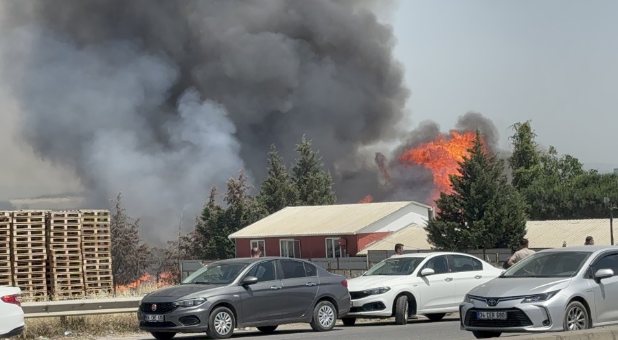 Havanın sıcak olması sebebiyle de yangın hızla büyüdü. Paletler alev alev yanarken, gökyüzünü siyah duman kapladı.
