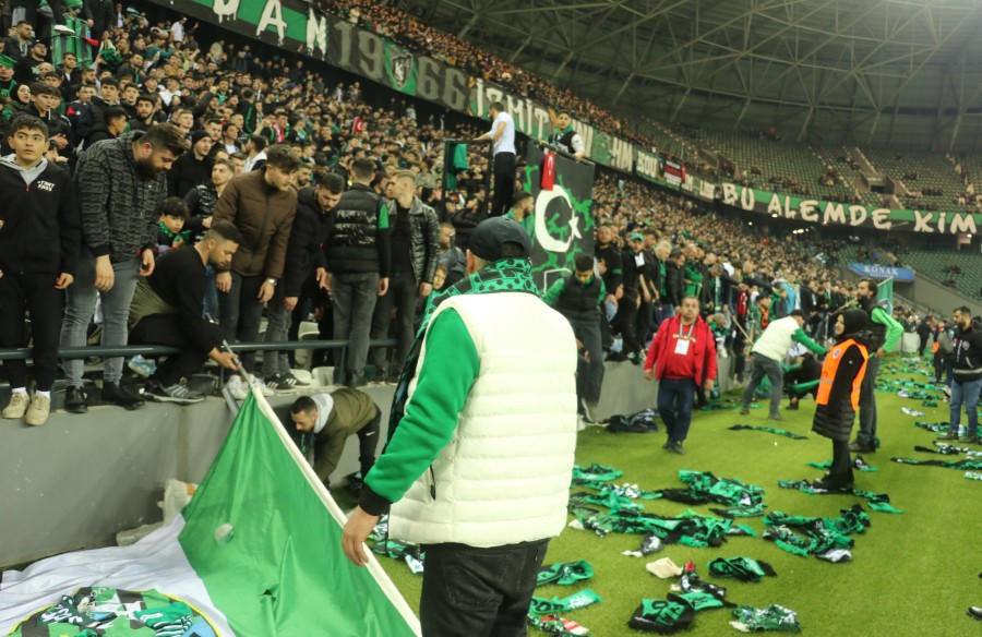 Kocaelispor, Sakaryaspor maçının 4 dakika 17. saniyesinde deprem bölgesindeki vatandaşlar unutulmadı. Sahaya atılan atkılar, deprem bölgesine gönderilmek için toplandı.