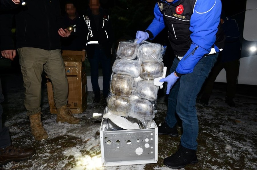 Otobüsün bagaj kısmında yapılan arama sırasında uyuşturucu arama köpeğinin tepki vermesi üzerine 2 kutuda yer alan kombiler kontrol edildi.Kombilerin kasalarına gizlenmiş 30 paket halinde 21 kilogram esrar ele geçirildi.