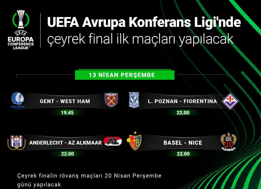 UEFA Avrupa Konferans Ligi'nde çeyrek final mücadelesi bugün yapılacak mücadelelerle başlayacak.