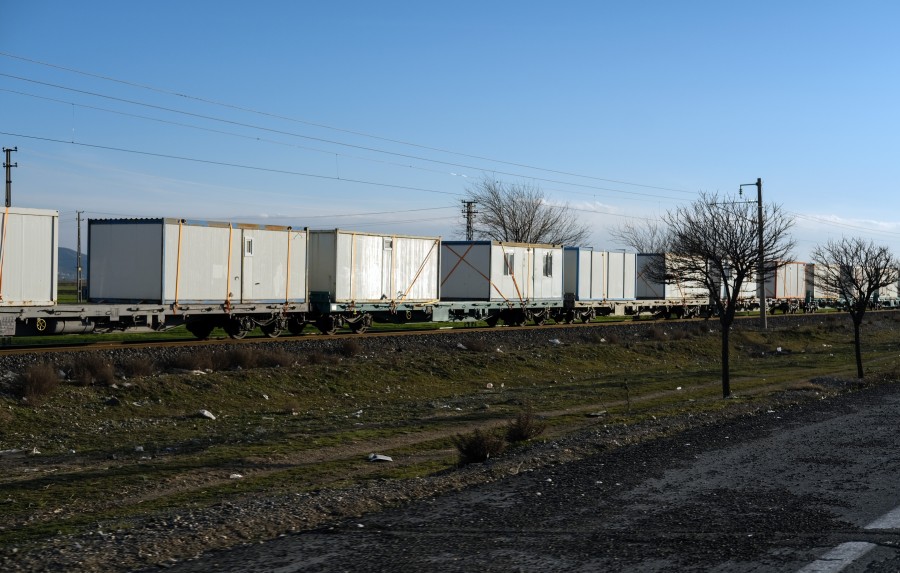 Kahramanmaraş'ta meydana gelen 2 büyük depremin ardından bölgeye tren yoluyla gönderilen yüzlerce konteyner ev görüntülendi.