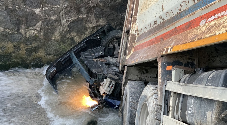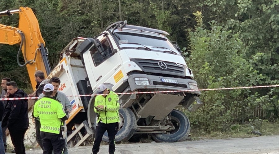 Kamyon askıda kalırken, dorsenin altında kalan otomobil ise hasar gördü. İhbarla bölgeye AFAD ve polis ekipleri sevk edildi. Bölgeye gelen ekipler yolda güvenlik önlemi alırken, kamyon ve otomobil ise çekici ile dere yatağından çıkarıldı.