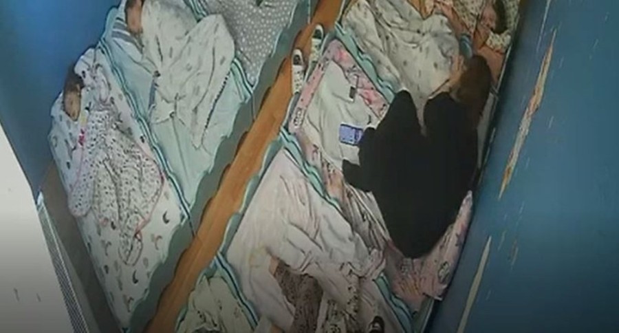 Görüntülerde öğretmen Betül K.'nin bebeğe tokat attığı ve ardından battaniye ile üzerini kapatarak uyutmaya çalıştığı görüldü.