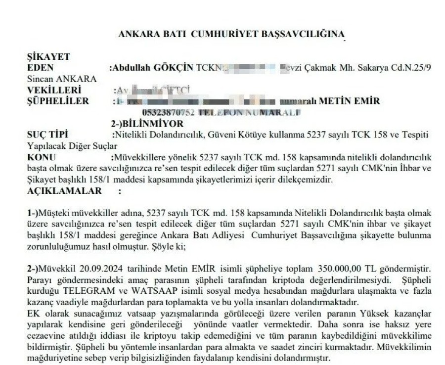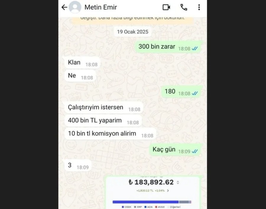 Kendisini sosyal medyada Bitcoin yorumcusu ve bulut madenciliği yatırımcısı olarak tanıtan Metin Emir'in mesajlaşma uygulamasıyla yüksek kâr vaadiyle birçok kişiyi dolandırdığı iddia edildi.