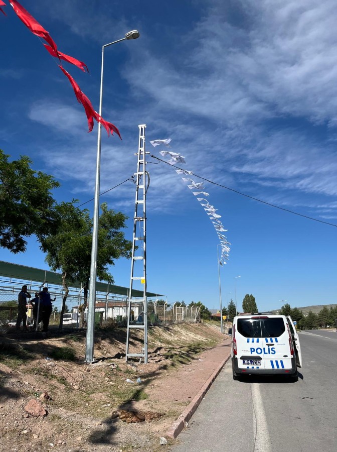 Çevredekileri rahatsız ettiğini söyleyen zabıta ekiplerine tepki gösteren, psikolojik sorunları olduğu belirtilen Ali B., kurban kesim yerinin dışında bulunan elektrik direğine ip bağlayarak kendini aşağı doğru bıraktı.