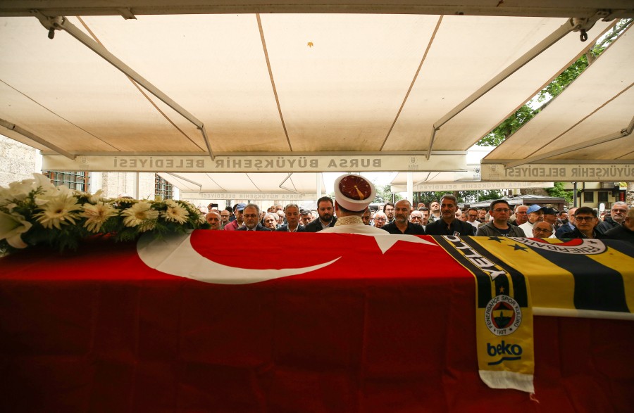 Payaslı'nın Türk bayrağına sarılı tabutuna Fenerbahçe flaması ve atkısı konuldu.