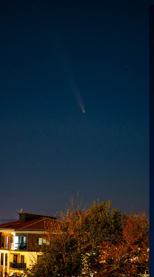 Kuyruklu yıldız şehrin meydana getirdiği ışık kirliliği dolayısı ile çıplak gözle çok zor gözükmektedir.