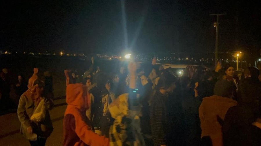 Öğrenciler, yurdun bahçesinde protesto etti.