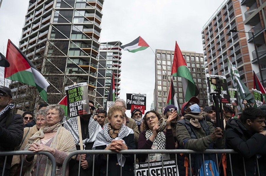 İngiltere'nin başkenti Londra'da on binlerce kişi, Gazze'de acil ateşkes ve Filistin halkıyla dayanışma göstermek için tekrar sokaklara döküldü.