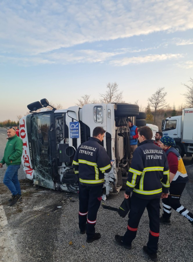 Kırklareli'nin Lüleburgaz ilçesinde bir tır yola devrildi. Kaza sonucu sürücü yaralandı.