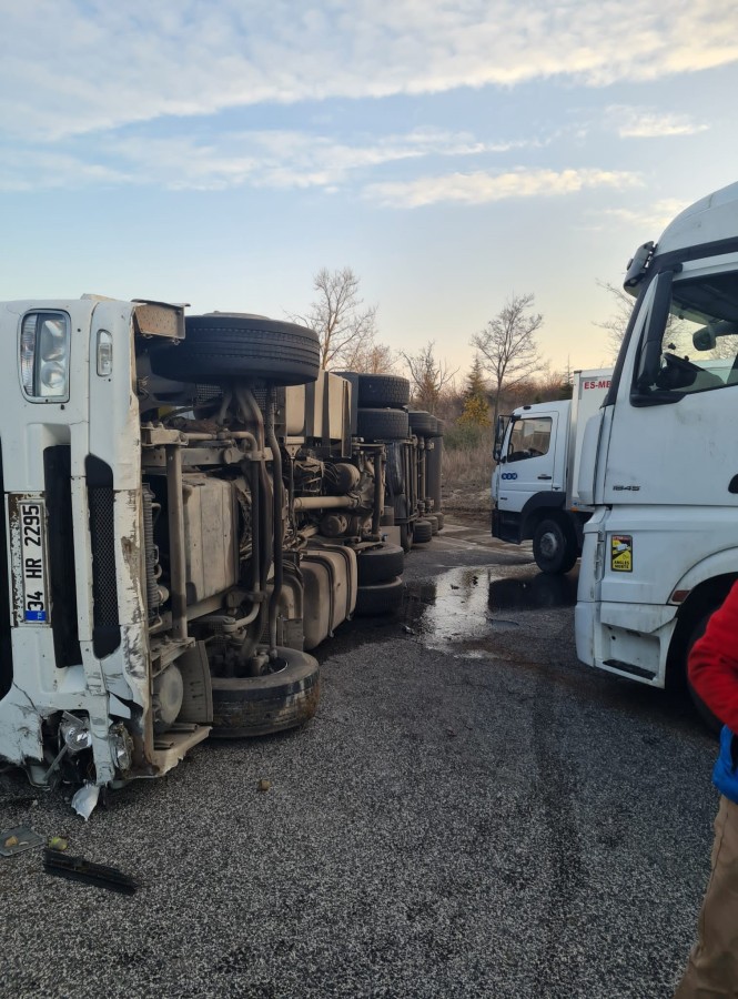 Edinilen bilgilere göre, Ş.D. idaresindeki 34 HR 2295 plakalı tır, sürücüsünün direksiyon hakimiyetinin kaybedilmesi üzerine devrildi.