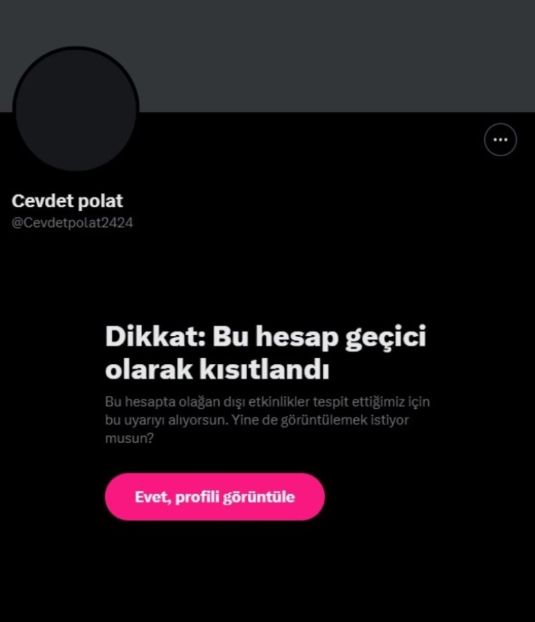 Ancak Cevdet Polat'ın hesabına X tarafından geçici kısıtlama getirildiği görüldü.