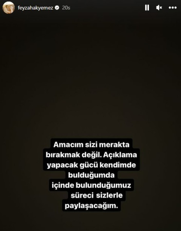 Daha sonra Instagram hesabından bir paylaşım yapan Hakyemez, "Amacım sizi merakta bırakmak değil. Açıklama yapacak gücü kendimde bulduğumda içinde bulunduğumuz süreci sizlerle paylaşacağım" ifadelerini kullanarak eşi Muhammet Oğuz Başar ile pozunu yayınladı.