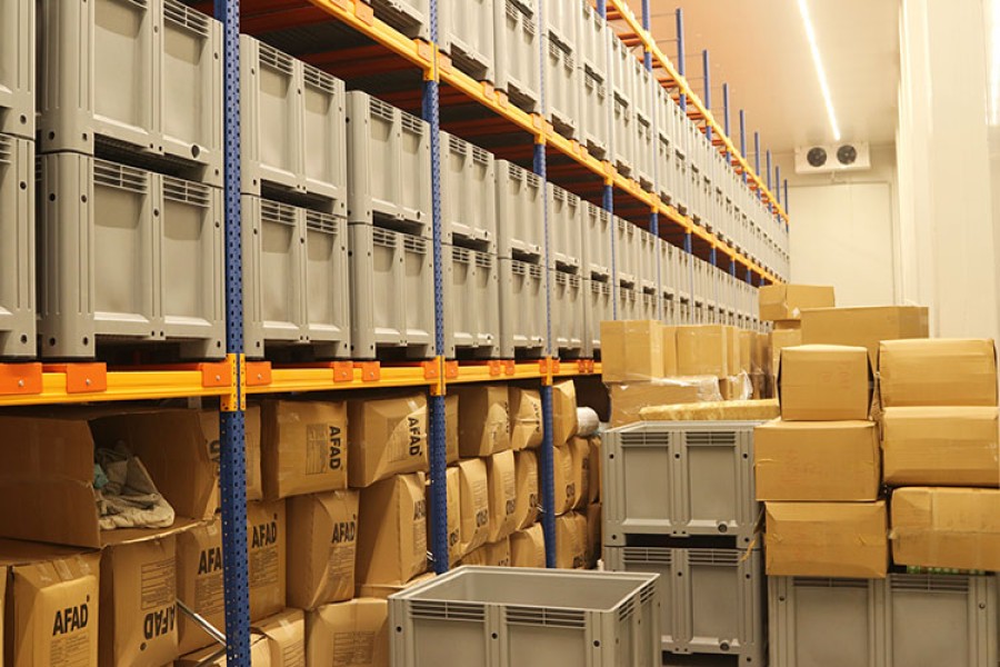 Ekipler giyeceğinden gıda malzemesine, unundan tüpüne, bebek bezinden mamasına her türlü malzemeyi tasnif ediyor.