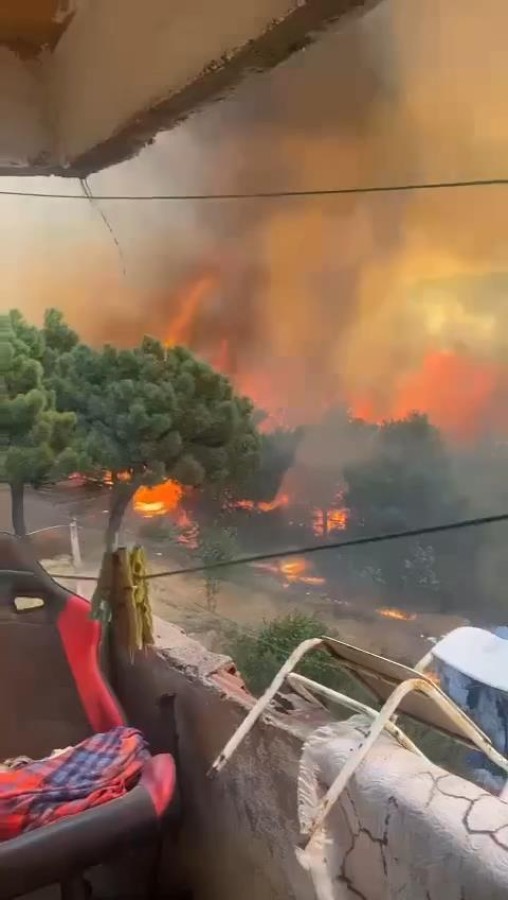 Evlerin balkonuna çıkanlar yangını cep telefonu kamerasıyla kaydetti.