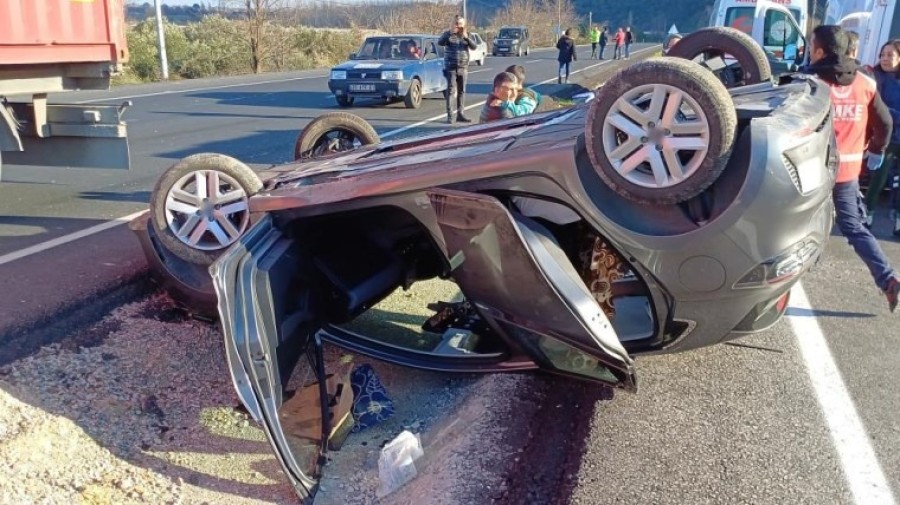 Çarpışmanın etkisiyle otomobil şarampole doğru takla atarak ters durdu. Çevredekilerin haber vermesi üzerine bölgeye çok sayıda ambulans, polis ve itfaiye ekipleri sevk edildi.