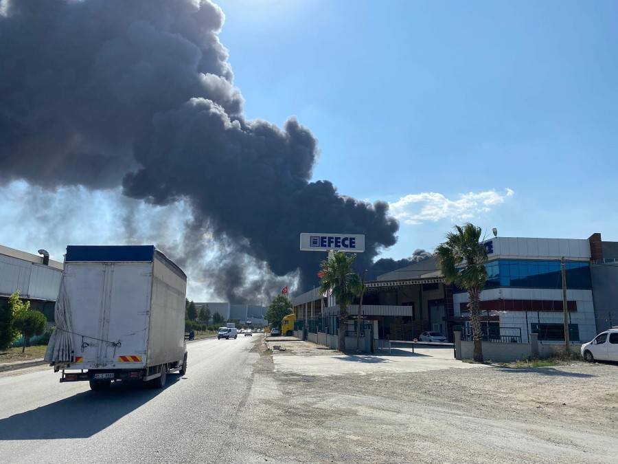 Manisa Yunusemre ilçesi Eski Menemen Caddesi'ndeki organize sanayi bölgesinde kurulu bulanan bir geri dönüşüm tesisinin bahçesinde depo olarak kullanılan bölümde, saat 16.30 sıralarında yangın çıktı.