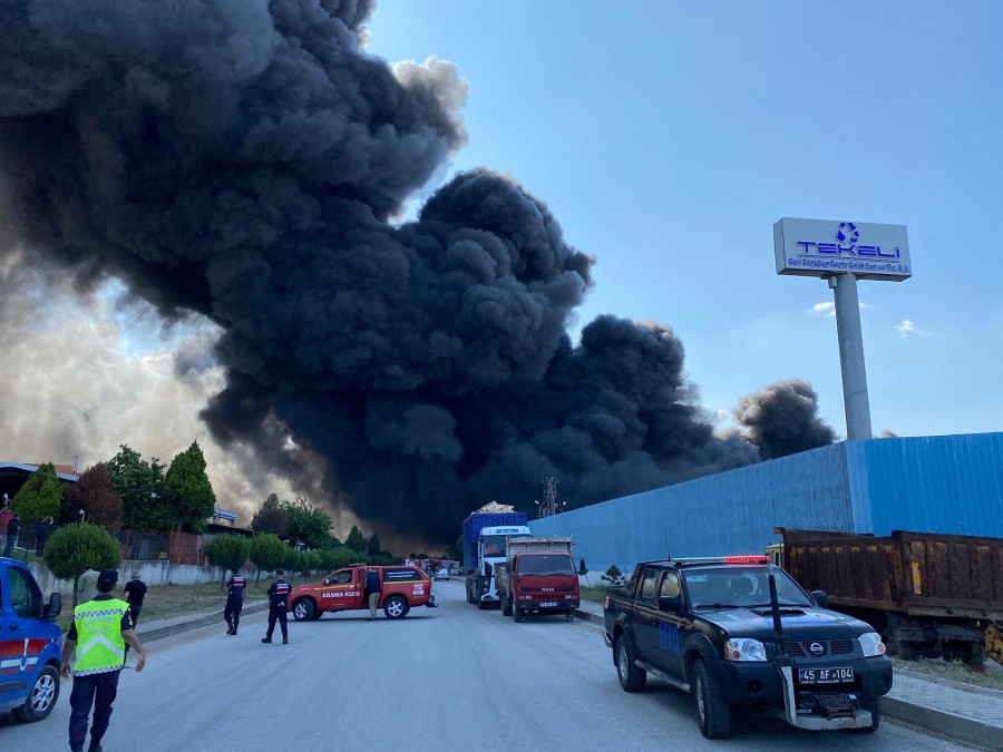 Manisa'da organize sanayi bölgesindeki bir geri dönüşüm tesisinde yangın meydana geldi. Bölgeye sevk edilen ekipler, alevlere havadan ve karadan müdahale ederek çalışmalara başladı.