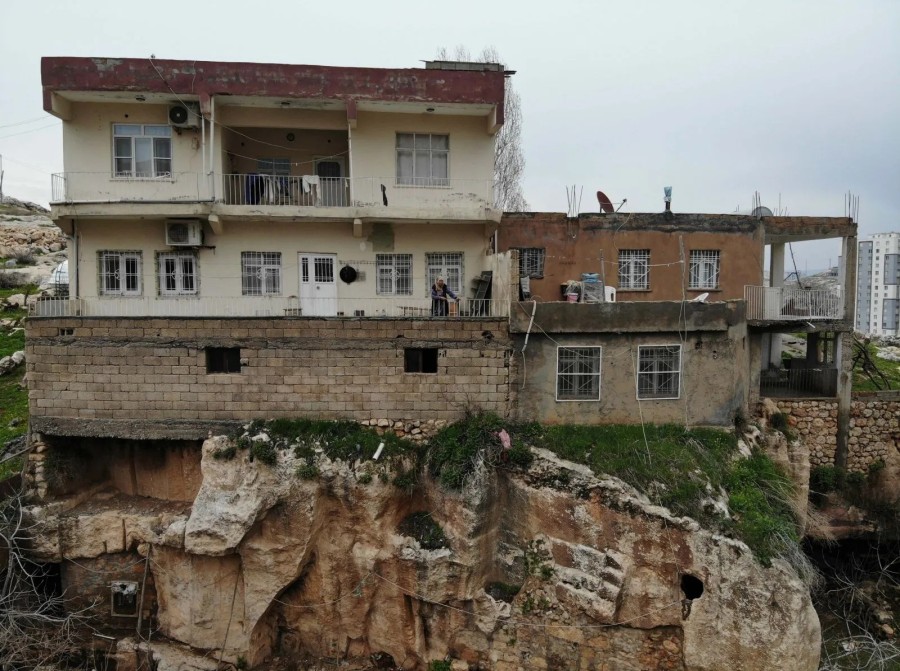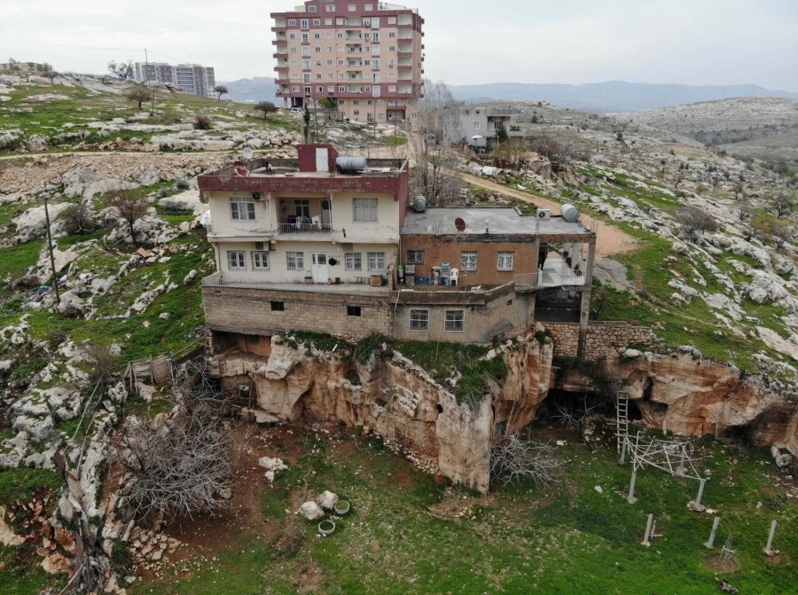 Mardin'in Artuklu ilçesinde bulunan yaklaşık 30 yaşındaki 3 katlı evi gören dönüp yeniden bakıyor. Altında bulunan mağaradan dolayı gören vatandaşların dikkatini çeken ev, 30 yıldır ayakta duruyor.