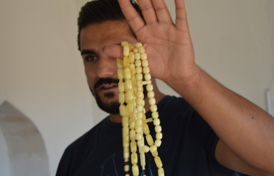 Aslında ben elektrik ustasıydım. 12 yıl önce motosiklet kazası geçirdim. Sonra amcamın oğlunun yanına yardım amaçlı gittim ve tespih sanatı beni cezbetti. O günden beri kendimi geliştirerek baba mesleğimi yapıyorum. Vatandaşlar en çok yeni malzeme dediğimiz sıkma ve zar kehribarı tercih ediyorlar bunlarda genellikle hediyeliklerde kullanılıyor" ifadelerini kullandı.