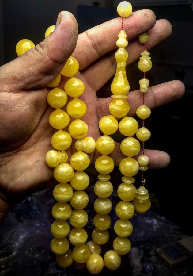 Kehribar çeşitleri zar kehribar, sıkma kehribar bunların içinde de bazı malzemeler farklı renklerde mor tonlarda üretiliyor. Kaplumbağa kabuğu, Fildişi boynuz, deve kemiğinden yapılan tespihler var. Özel sipariş üzerinden tespihler yapıyoruz istediğiniz boyda malzemeyi siz getirebilirsiniz ya da bizden istersiniz istediğiniz boyda istediğiniz modelde yapabiliriz.