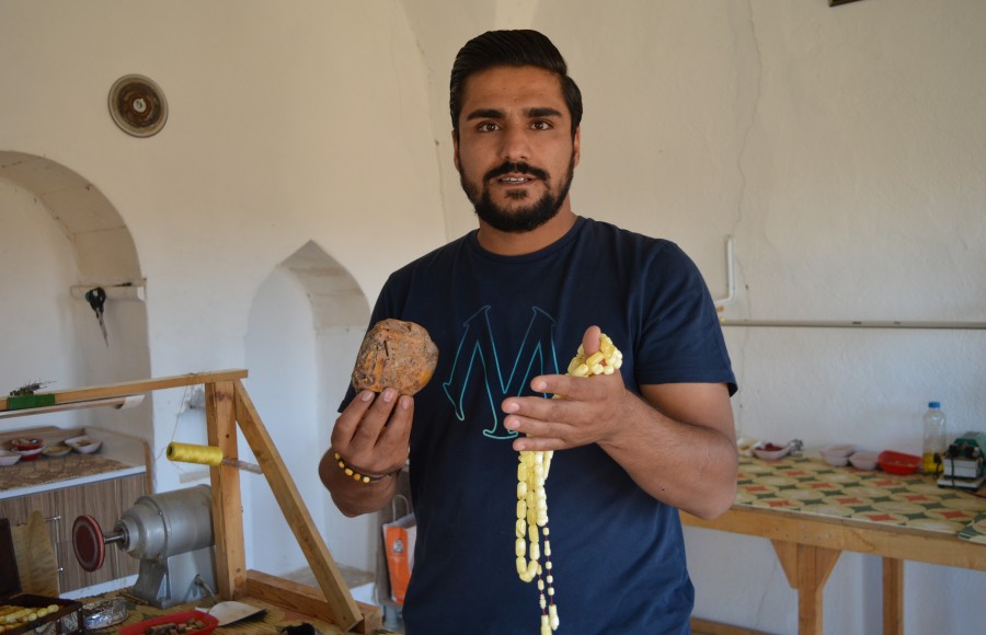 Bin dolardan 30 bin dolara kadar alıcısı oluyor. Her türden tespihlerimiz de mevcuttur. Tespih malzemelerimiz genellikle sıkma kehribar ve katalin malzemelerden yapılmaktadır. Oradaki emirlerin ellerindeki tespihlerin çoğu Mardin'den gönderdiğimiz tespihlerdir. Mardin'in reklamını da bu şekilde yapıyoruz" diye konuştu.
