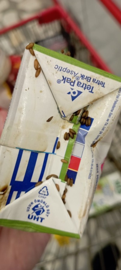 Bir markete yaptığı denetimde ambalajının etrafı kurtlanmış süt ürünü tespit eden ekipler, ilgili market hakkında tutanak tuttu.