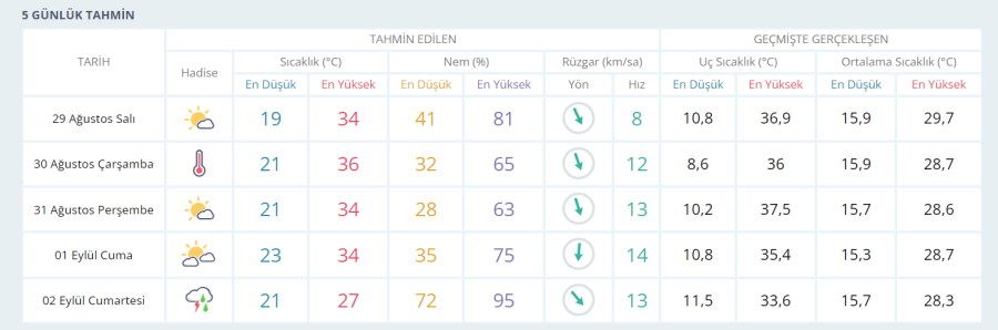 Bazı illerde beklenen hava durumuyla günün en yüksek sıcaklıkları ise şöyle: