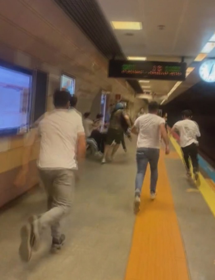 Metrodakiler adamın telefonunu alarak kontrol ettiklerinde kıza ait videolar buldu. Metronun kapıları açıldıktan sonra yaşanan arbede de adama yumruk atıldığı görülüyor.