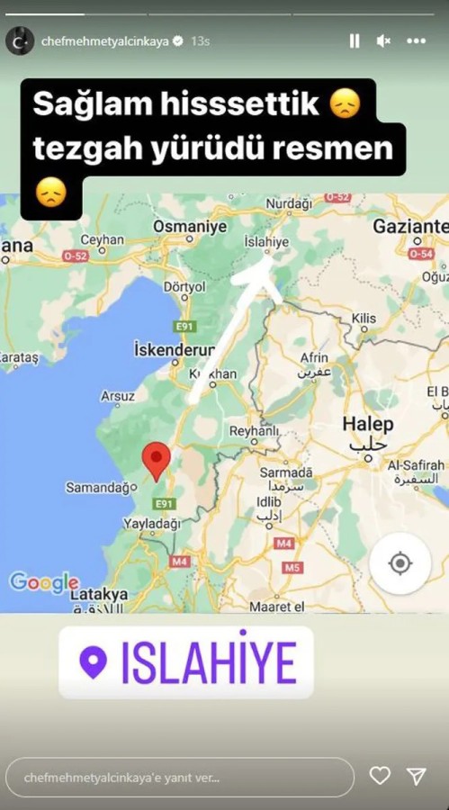 Deprem bölgesinde vatandaşlara yardımda bulunan Mehmet Yalçınkaya sosyal medya hesabından yaşadığı korku dolu anlar anlattı. Şef Mehmet Yalçınkaya yaptığı paylaşımda depreme mutfakta yakaladıklarını söyleyerek "Sağlam hissettik. Tezgah yürüdü resmen" ifadelerini kullandı.