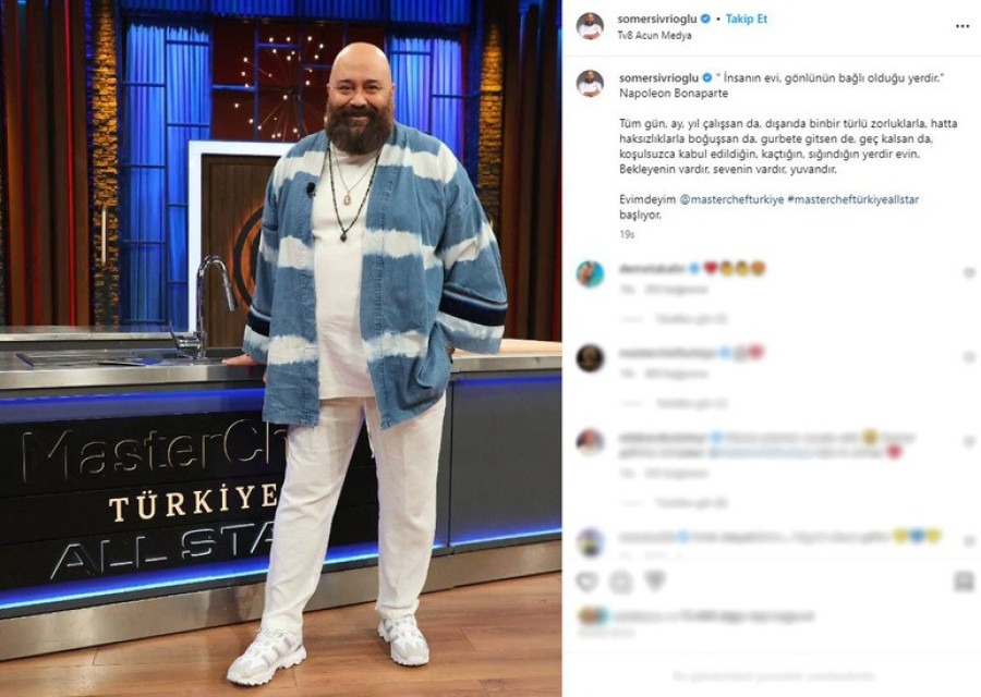 Yarışmanın yeni bölümü yayınlanmadan Instagram hesabından paylaşım yapan Sivrioğlu, "Tüm gün, ay, yıl çalışsan da, dışarıda bin bir türlü zorluklarla, hatta haksızlıklarla boğuşsan da, gurbete gitsen de, geç kalsan da, koşulsuzca kabul edildiğin, kaçtığın, sığındığın yerdir evin. Bekleyenin vardır, sevenin vardır, yuvandır. Evimdeyim, MasterChef Türkiye All Star başlıyor" ifadelerine yer verdi.
