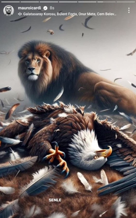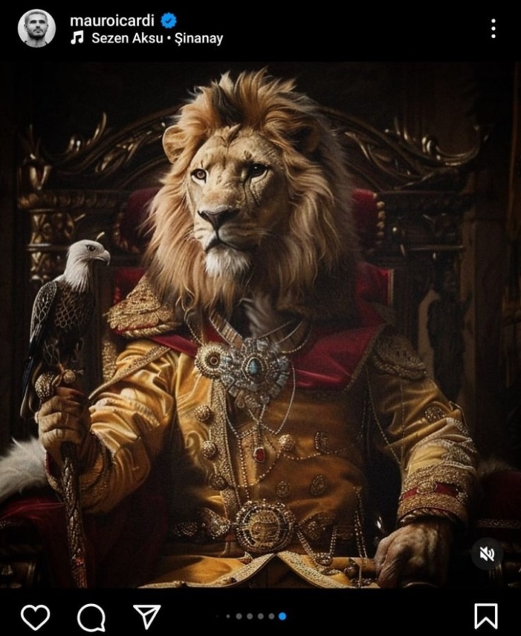 Mauro Icardi sosyal medya hesabından yaptığı paylaşımda tahtta oturan aslan ve aslanın elindeki asanın üzerinde kartal görseli olan bir fotoğraf kullandı.
