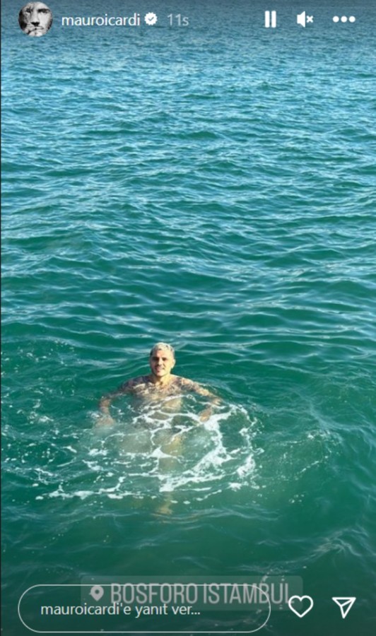 Mauro Icardi ilerleyen dakikalarda ise boğazda yüzdüğü anları yayınladı.