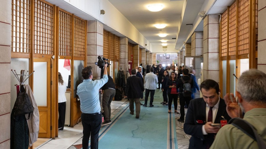 Kapalı oturuma geçildiği için, yeminli stenograflar ile görevliler dışındakiler salon dışına çıkarıldı. Meclisteki Genel Kurul salonuna bitişik basın büroları ve kulisler de boşaltıldı.
