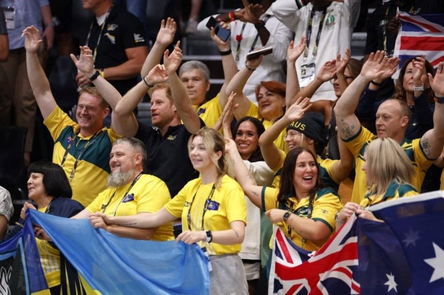 Müsabakalarda bugün ilk kez boy gösteren Markle, eşi Prens Harry ile birlikte Avustralya ve Ukrayna arasında oynanan tekerlekli sandalye maçını seyretti.