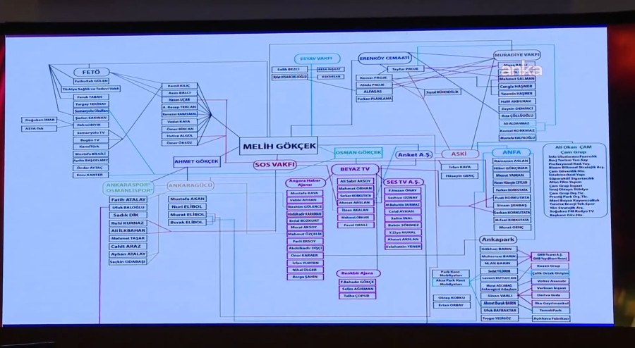 Ankara Büyükşehir Belediye Başkanı Mansur Yavaş'ın, Melih Gökçek ve ailesine ilişkin yayımladığı "ahtapot" şemasında, FETÖ soruşturmalarıyla anılan isimlerin yer aldığı belirtildi. Yavaş'ın paylaştığı şemada, Gökçek hakkındaki suç duyurularına ilişkin takipsizlik kararını veren savcının FETÖ davasından 9 yıldır aranan Şadan Sakınan olduğu iddia edildi.