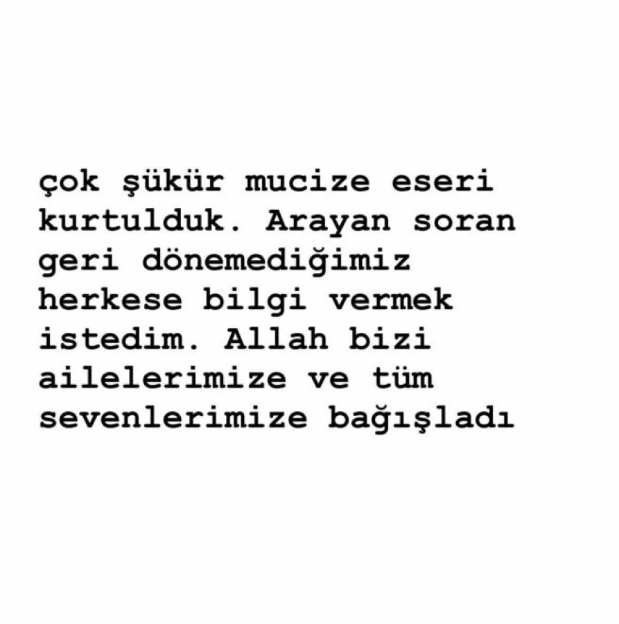 Melis Sandal Instagram hesabından yaptığı açıklamada "Çok şükür mucize eseri kurtulduk. Arayan, soran geri dönemediğimiz herkese bilgi vermek istedim. Allah bizi ailelerimize ve tüm sevenlerimize bağışladı" ifadelerini kullandı.
