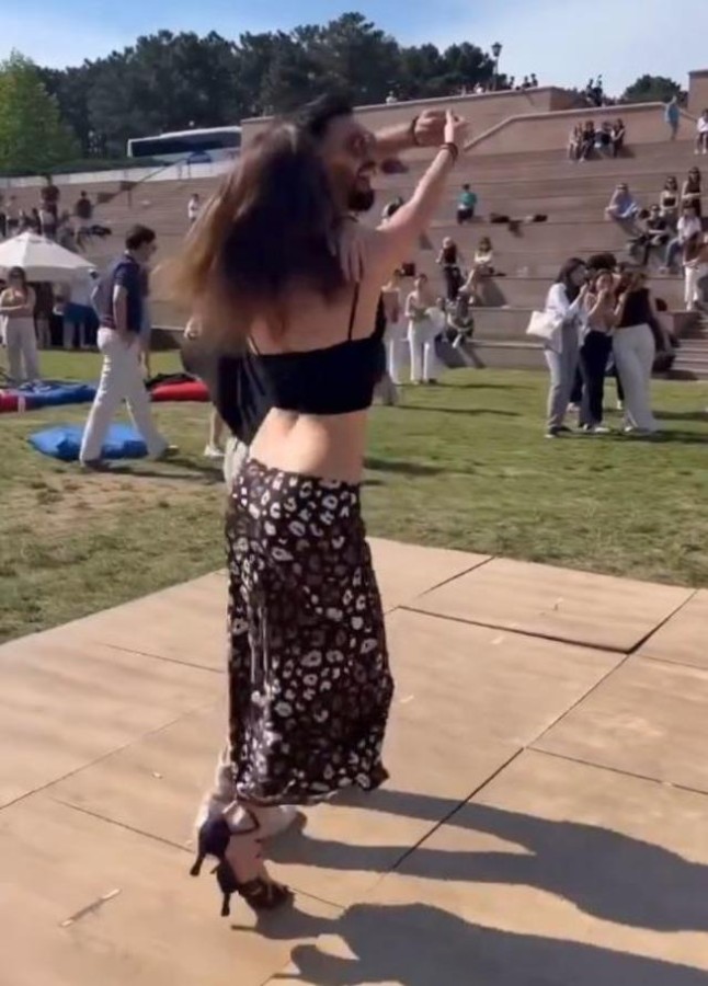 Hem düşük bel eteği hem de kendini dansa kaptırıp kaybettiği anlar sosyal medyayı ikiye böldü.