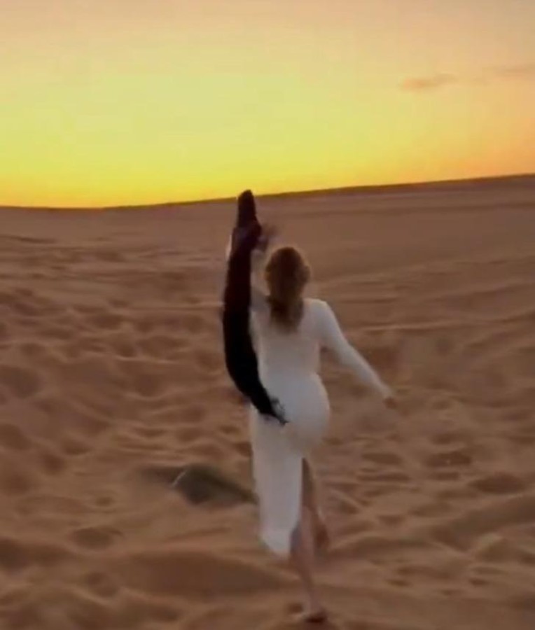 Güzel oyuncu ilginç dans videoları serisine bir yenisini daha ekledi ve bu sefer dansını Dubai kumlarında yaptı.
